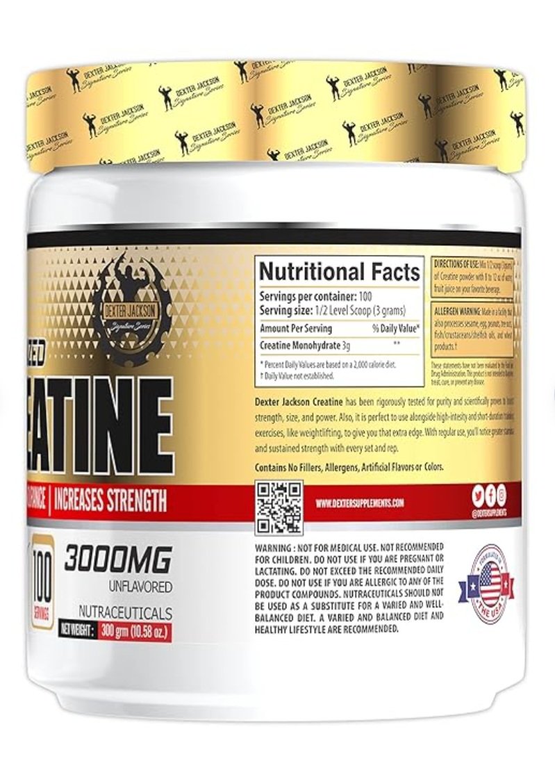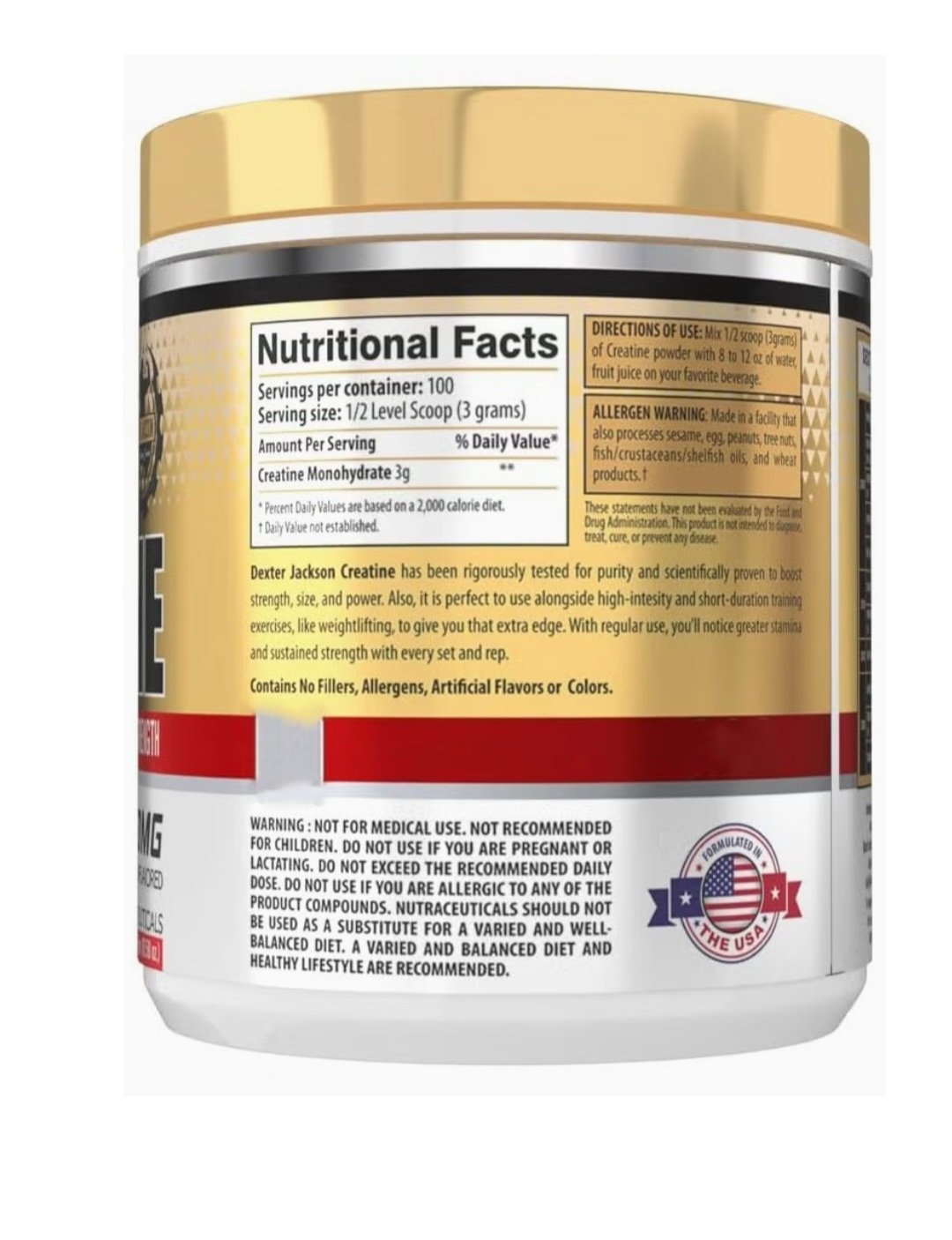 Dexter Micronized Creatine is a potent fitness supplement containing 3000MG of creatine per serving. With an unflavored formula, it offers versatility in consumption. The 300g container provides 100 servings, making it a convenient and cost-effective choice to enhance athletic performance and muscle strength. Trust in Dexter’s reputation for quality supplements as you incorporate this product into your fitness routine for optimal results.