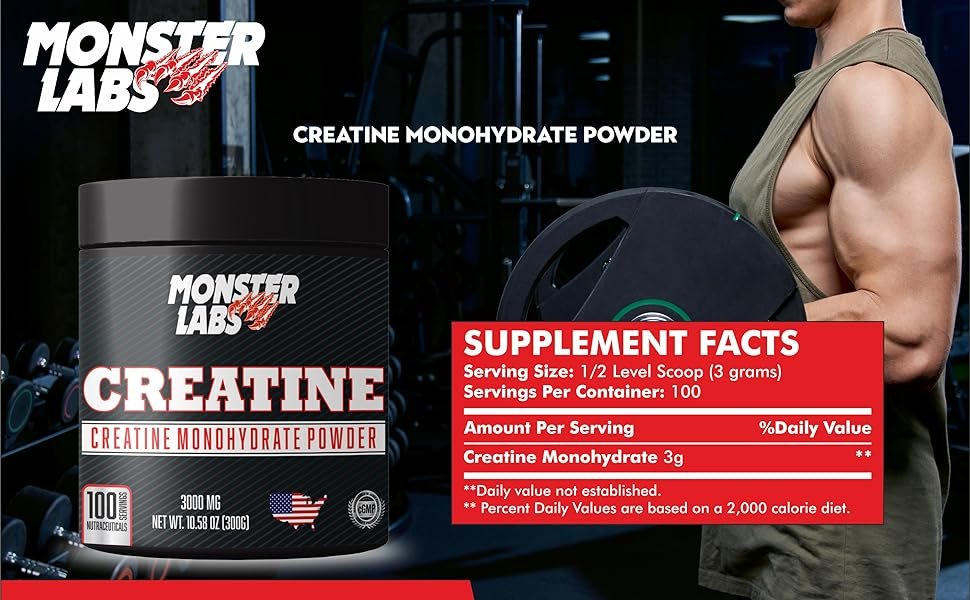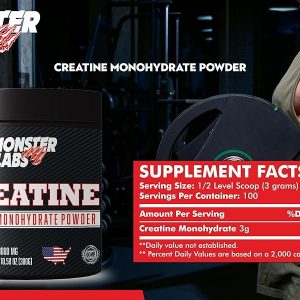 Monster Labs Creatine Powder is formulated with creatine monohydrate, which plays a key role in the body. Creatine is used to create ATP molecules needed for muscle function. Taking creatine helps increase the overall physical potential of the body and stimulates muscle growth. Recovery from exercise is also improved with creatine use.