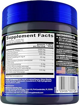 WHEN IT COMES TIME TO BRING THE NOISE FOR A WORKOUT, ASSESS YOUR TOLERANCE BY TAKING (½) SCOOP PRIOR TO TRAINING. ONCE YOUR TOLERANCE IS ASSESSED MIX (1) SCOOP WITH 4-6 OUNCES OF WATER 30 MINUTES PRIOR TO TRAINING. DO NOT EXCEED (1) SCOOP IN A 24-HOUR PERIOD.